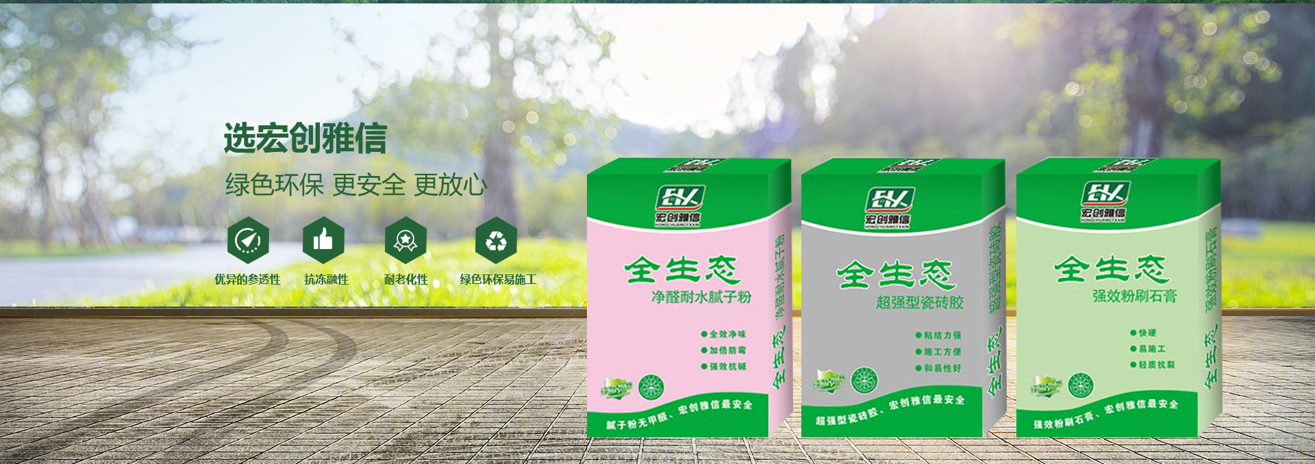 宏創(chuàng)雅信裝飾材料北京有限公司(威海分公司)是一家生產(chǎn),研發(fā),運(yùn)輸,施工綜合性股份制企業(yè),主要產(chǎn)品:快粘粉、嵌縫石膏、內(nèi)外墻耐水膩?zhàn)臃?、?nèi)墻超細(xì)膩?zhàn)臃邸⒏邚?qiáng)石膏、粉刷石膏、瓷磚粘接劑、填縫劑、內(nèi)外墻防水涂料、108膠、聚合物粘接砂漿、聚合物抗裂抹面砂漿、灰鈣、重質(zhì)碳酸鈣、砌筑砂漿、膠粉聚苯顆粒、浮雕骨料、玻化微珠保溫砂漿、FTC相變節(jié)能保溫砂漿、SF增水保溫砂漿、等產(chǎn)品。